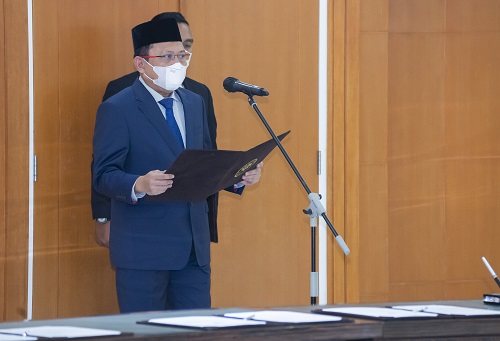 Jakarta-Humas: Sekretaris Mahkamah Agung (MA) Prof. Dr. H. Hasbi Hasan, S.H., M.H., melantik dan mengambil sumpah jabatan tujuh orang Pejabat Fungsional Pengelola Barang dan Jasa pada Jumát, 13 Mei 2022 di lantai 2 Gedung Tower Mahkamah Agung, Jakarta. Pada kesempatan yang sama, Sekretaris Mahkamah Agung juga melantik satu orang Pejabat Eselon III.