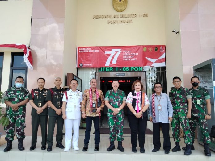 Pontianak, Selasa 9 Agustus 2022. Kepala Pengadilan Militer I-05 Pontianak Letnan Kolonel Chk Setyanto Hutomo, S.H. didampingi Wakadilmil Letnan Kolonel Laut (KH) Amriandie, S.H., para Hakim Militer, Sekretaris, Panitera dan Para Kasubbag menerima kunjungan Tim Evaluator Pusdiklat Menpim Balitbang Diklat Kumdil Mahkamah Agung RI dalam rangka Observasi Aksi Perubahan Peserta PKA dan PKP dan Latsar Tahun 2020 s.d. 2022 di Kalimantan Barat.