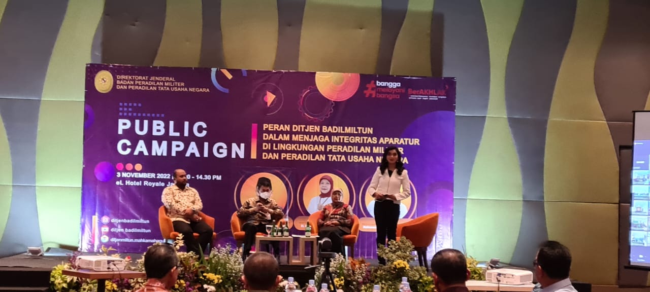Pelaksanaan kegiatan Public Campaign (talkshow) dilaksanakan dengan tema “Peran Direktorat Jenderal Badan Peradilan Militer Dan Peradilan Tata Usaha Negara dalam menjaga Integritas Aparatur Di Lingkungan Peradilan Militer dan Peradilan Tata Usaha Negara”.