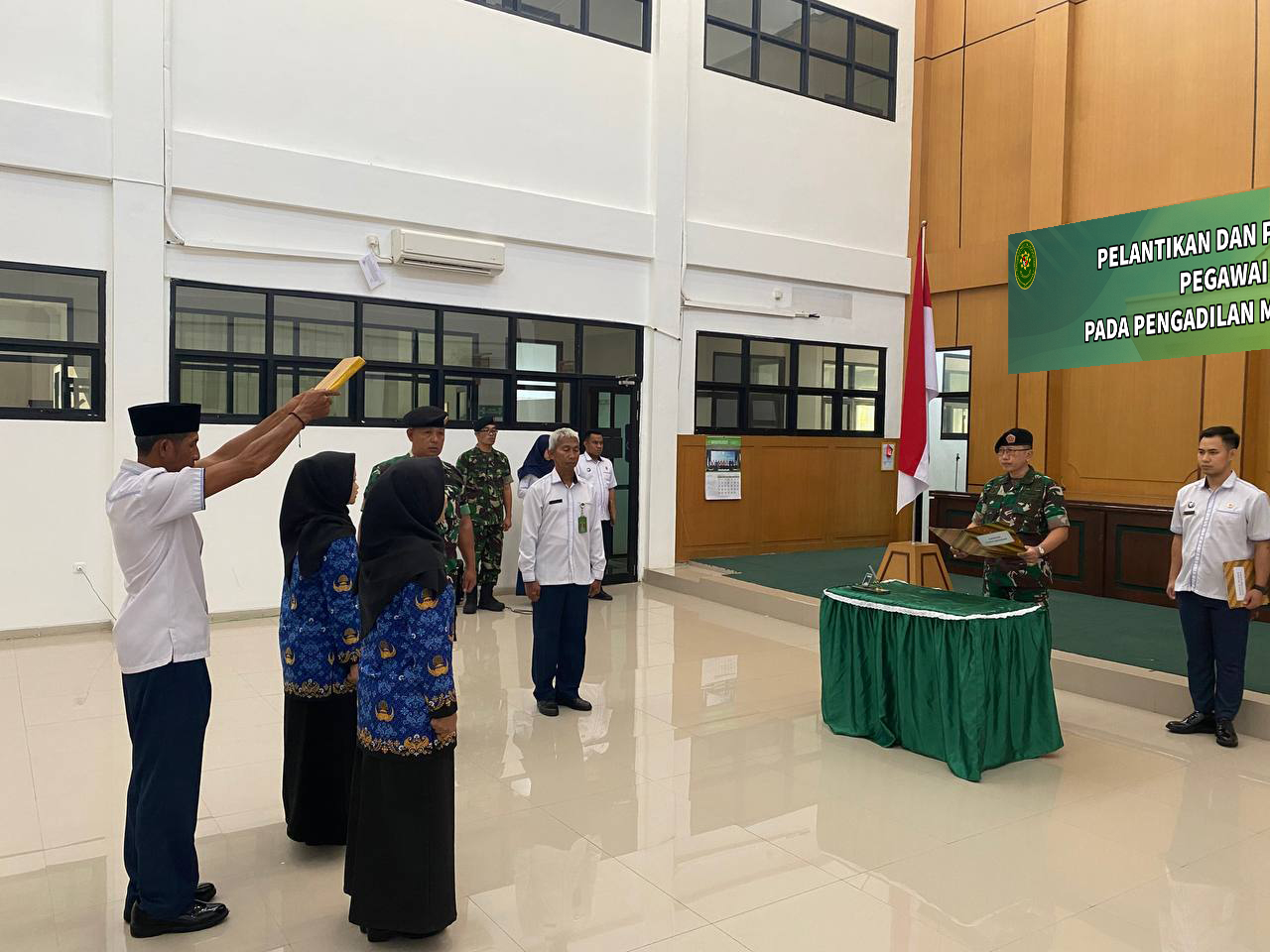 Dalam Pengambilan Sumpah dan Pelantikan Pegawai Negeri Sipil ini disaksikan pula oleh dua orang saksi yakni Kapten Chk Ajat Sudrajat, S.H., (Panitera) dan Harsani, S.Sos. (Kasubbag Perencanaan, TI dan Pelaporan) serta rohaniawan Bapak Agusni Rizal. Acara Pengambilan Sumpah dan Pelantikan tersebut berjalan dengan lancar dan penuh khidmat.