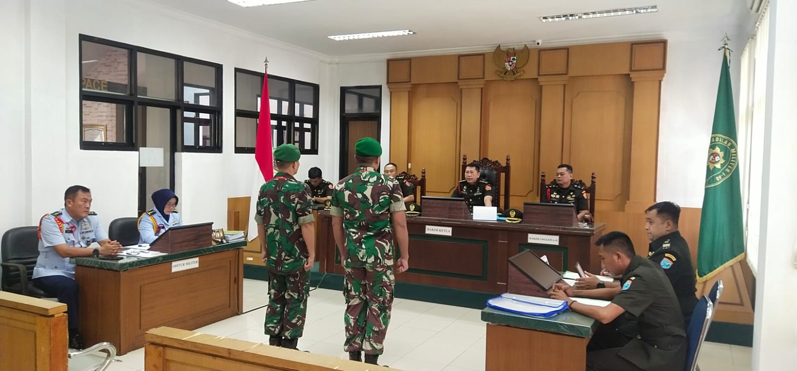 Sidang di mulai pada pukul 09.05 WIB dengan di buka oleh Hakim Ketua yang di hadiri oleh Oditur Militer dan Penasehat Hukum serta para Terdakwa Serka AM dan Serma TZ, Agenda Sidang pada hari ini yaitu Pembacaan Dakwaan oleh Oditur Militer, Pemeriksaan Saksi dan dilanjutkan dengan Pemeriksaan Barang Bukti. Oleh karena masih terdapat beberapa Saksi yang belum dapat hadir di persidangan maka sidang di tunda dan akan dilanjutkan pada hari Kamis 8 Juni 2023 dengan agenda sidang Pemeriksaan Saksi yang belum diperiksa.