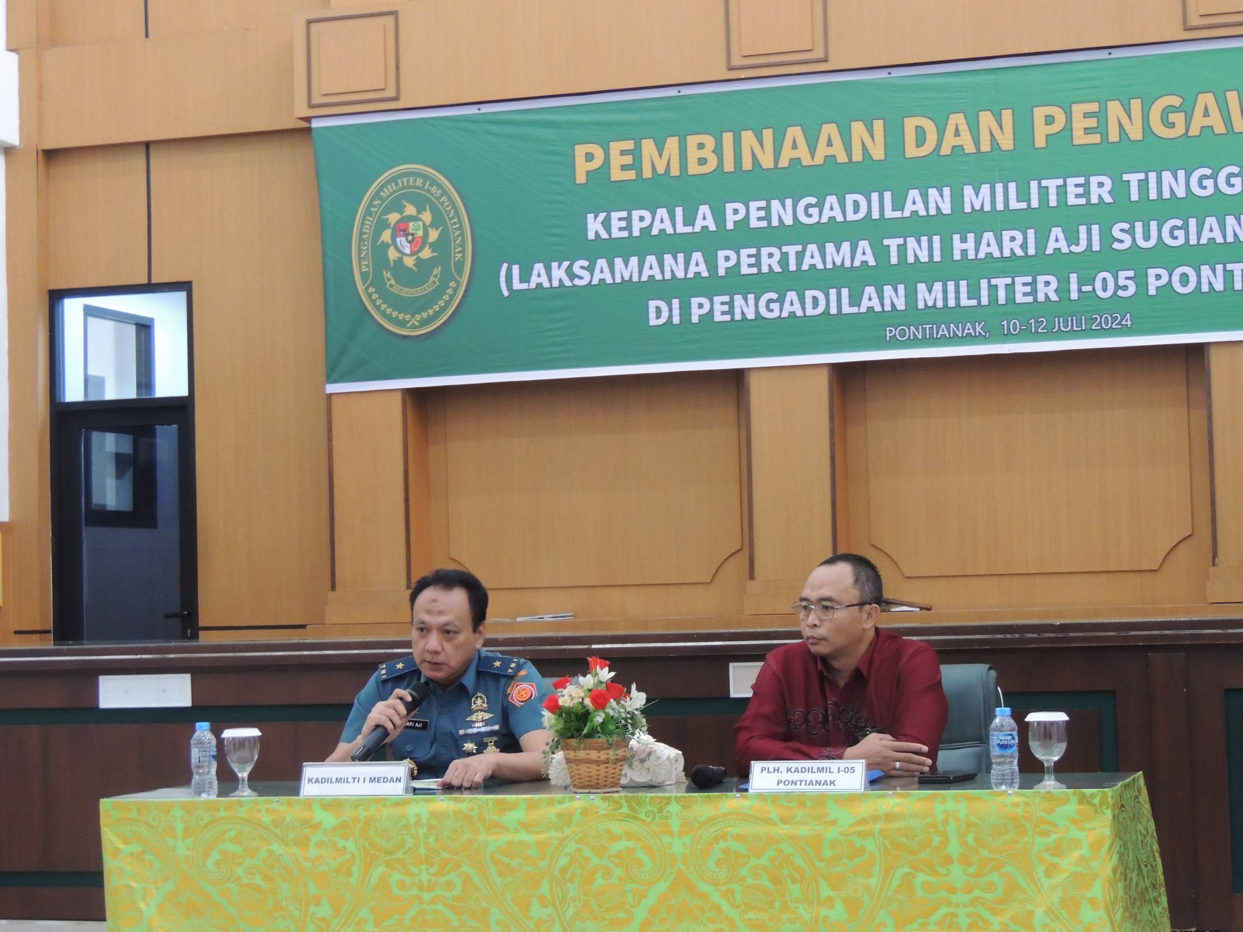 Pontianak, 11 Juli 2024. Kepala Pengadilan Militer Tinggi I Medan Laksamana Pertana TNI HAri Aji Sugianto, S.H., M.H. beserta tim yang terdiri dari Kolonel Kum Saifuddin, S.H.,M.H. (Hakim Dilmilyi I Medan), Serma Surya Bakti, S.E (Bendahara Dilmilti I Medan), Kolonel Chk Yudi Zachrumi, S.H. ( Panitera Dilmilti I Medan) melaksanakan Binwas di Pengadilan Militer I-05 Pontianak berdasarkan Surat Perintah Kadilmilti I Medan Nomor 1177/KPMT.W1-Mil/ST.PW1.1/VII/2024 dan Nomor 1178/KPMT.W1-Mil/ST.PW1.1/VII/2024.