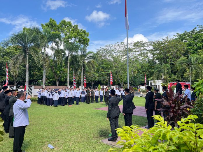 Pontianak. Senin, 19 Agustus 2024 pukul 09.00 WIB Bertempat di Halaman Gedung Pengadilan Tinggi Pontianak, Kepala Pengadilan Militer I-05 Pontianak Kolonel Chk Setyanto Hutomo, S.H. beserta Para Staf mengikuti kegiatan Upacara dalam rangka Memperingati Hari Ulang Tahun Mahkamah Agung Republik Indonesia yang Ke 79.