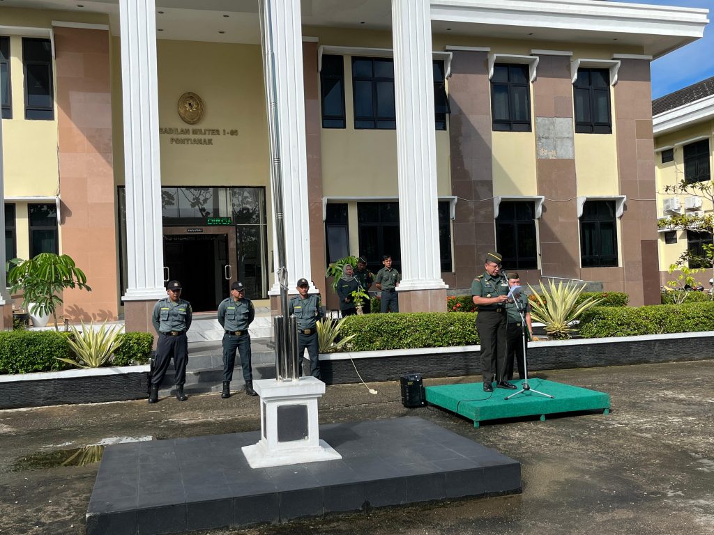 Bertempat di halaman Gedung Pengadilan Militer I-05 Pontianak telah dilaksanakan Upacara Bulanan, bertindak selaku Inspektur Upacara Kolonel Chk Setyanto Hutomo, S.H. Komandan Upacara Panitera Pengganti Lettu Chk Puji Nurfardi Hartanto, S.H.