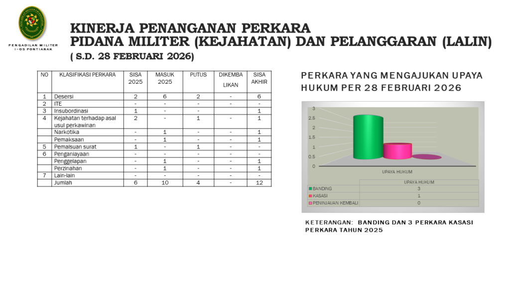 Selamat datang di website Pengadilan Militer I-05 Pontianak. Silahkan menggunakan pencarian untuk mencari berita kami. Dan aplikasi kami untuk mempermudah anda.