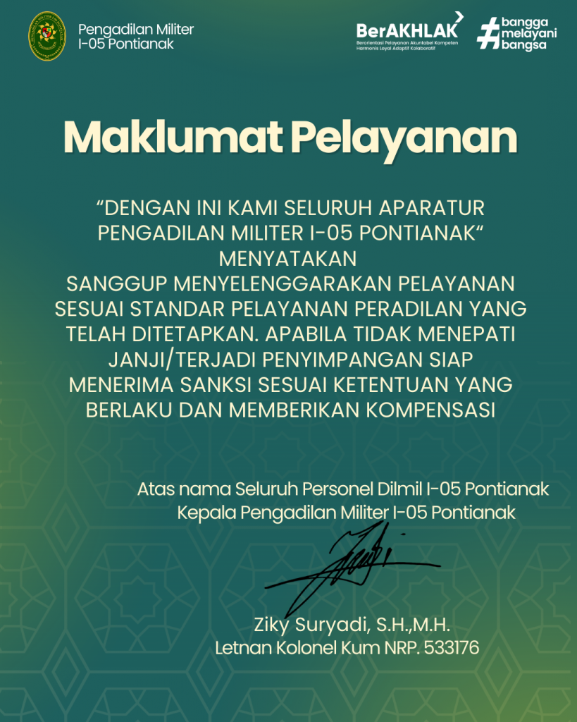 Download Penetapan Maklumat Pelayanan Pengadilan Militer I-05 Pontianak