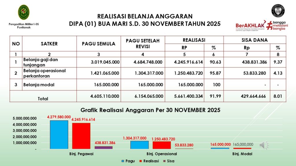 | 10 | REALISASI ANGGARAN PER 30 NOVEMBER 2025 | DIPA (01) DIPA (05) | REALISASI DIPA (01) REALISASI DIPA (05) |