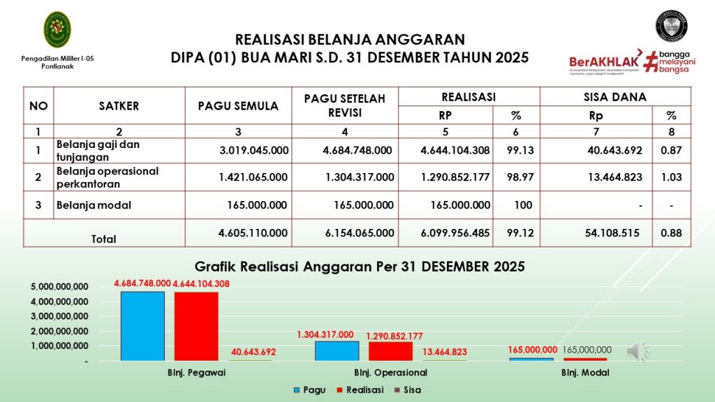 | 11 | REALISASI ANGGARAN PER 31 DESEMBER 2025 | DIPA (01) DIPA (05) | REALISASI DIPA (01) REALISASI DIPA (05) |