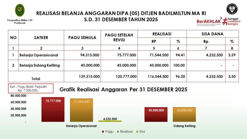 | 7 | REALISASI ANGGARAN PER 31 JULI 2025 | DIPA (01) DIPA (05) | REALISASI DIPA (01) REALISASI DIPA (05) |